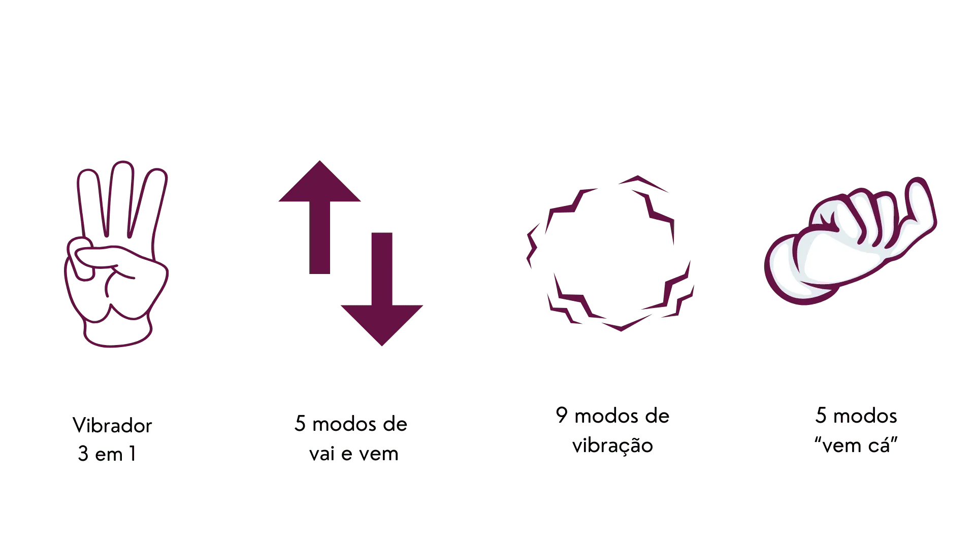 5 modos “vem cá” — reproduzindo o movimento dos dedos que alcançam o ponto G com precisão e intensidade.